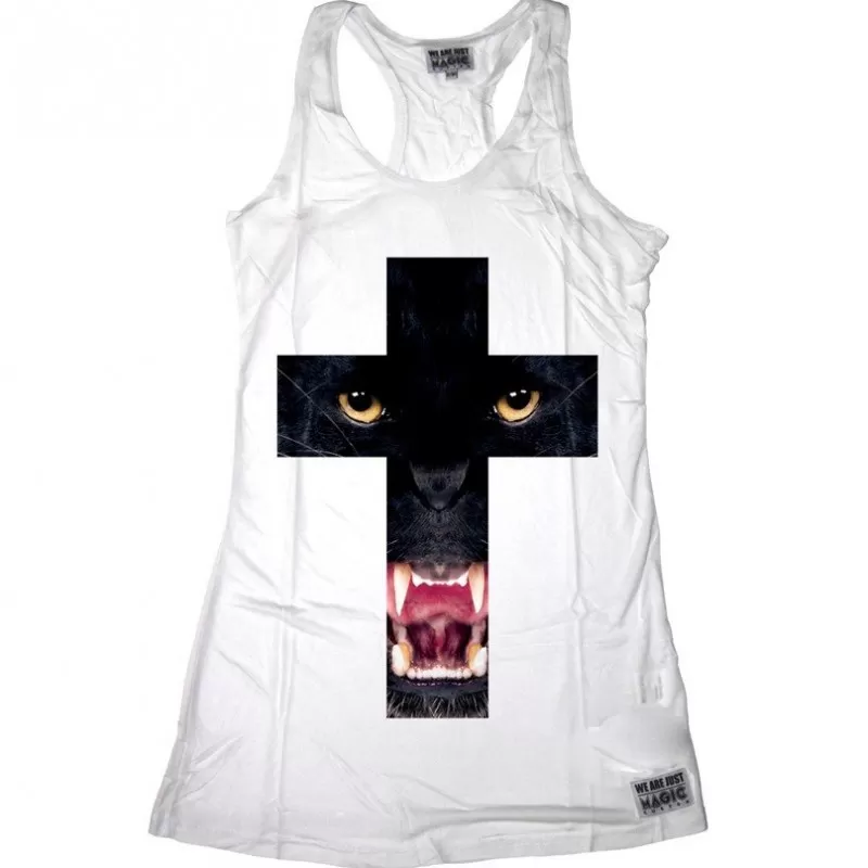 Debardeur femme de couleur noir Collection Animal ross avec illustration ‘PANTHERE’ imprimé sur l’avant du vêtement