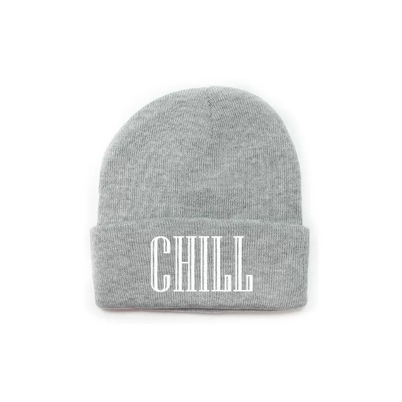 Bonnet Magic custom de couleur avec logo « CHILL » brodé en blanc sur le devant du rabat.
