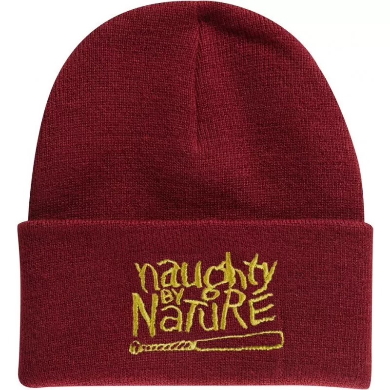 Bonnet Magic custom avec logo « NAUGHTY BY NATURE » brodé en jaune sur le devant du rabat.