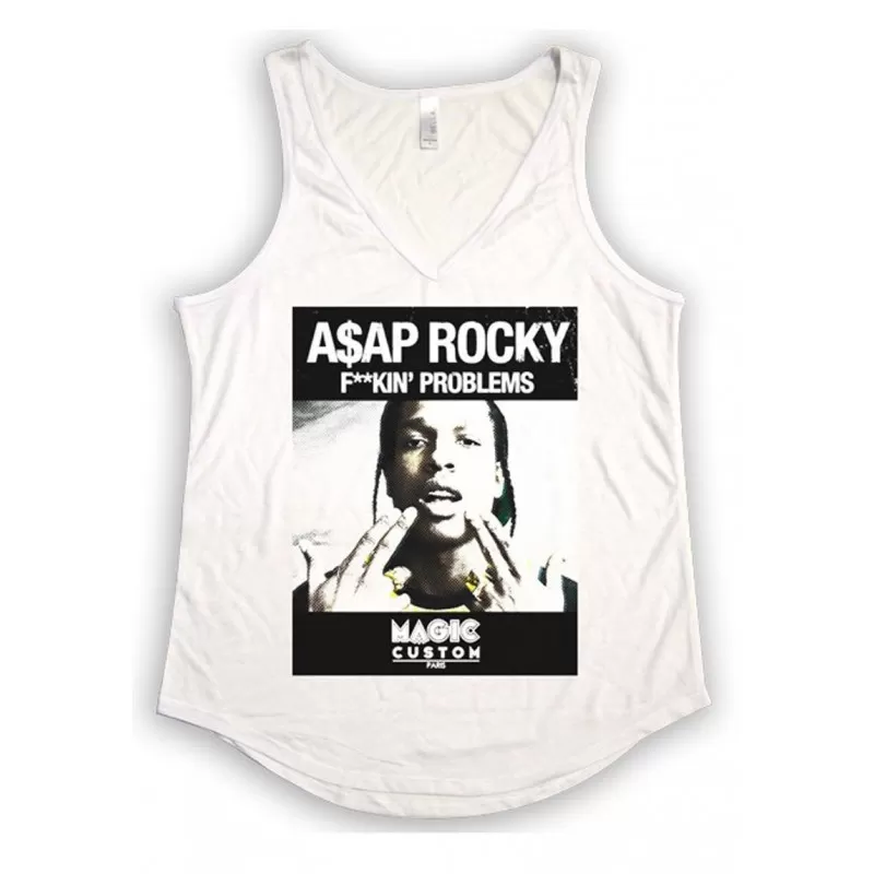 Debardeur femme de couleur gris avec illustration ‘ Asap rocky fuckin problems‘ imprimé sur l’avant du vêtement