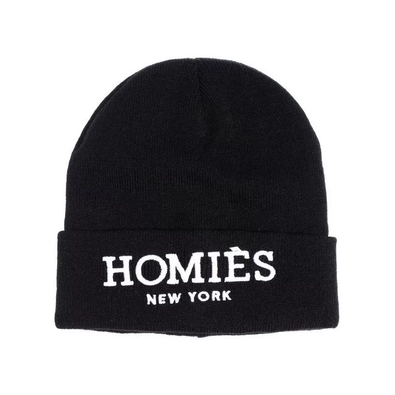 Bonnet HOMIES de couleur noire avec logo ‘HOMIES NEW YORK’ brodé en blanc sur le devant du bonnet