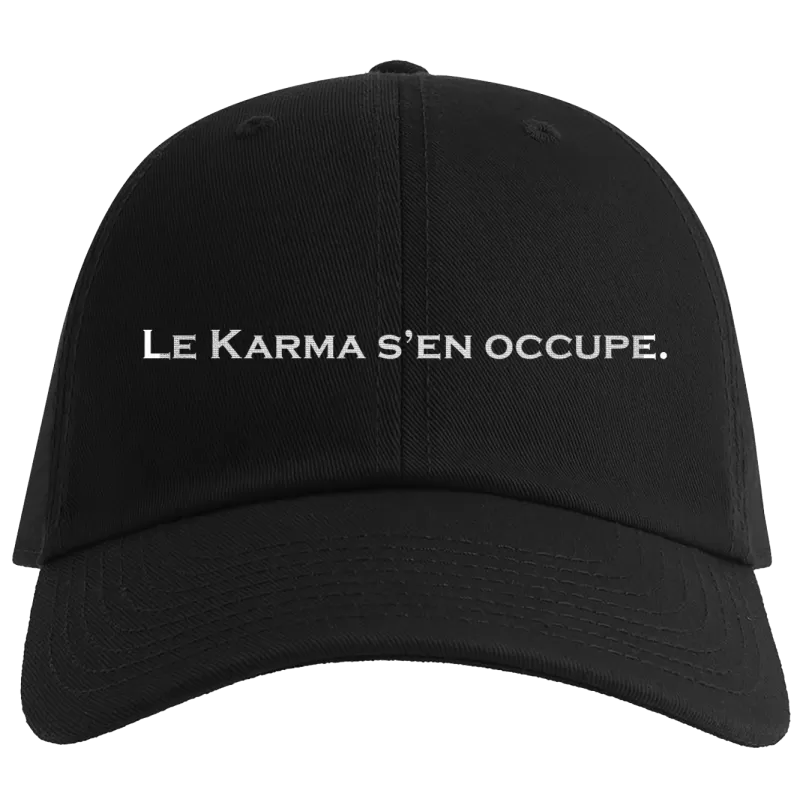 - Broderie sur l’avant logo ‘LE KARMA S’EN OCCUPE’ brodé en blanc