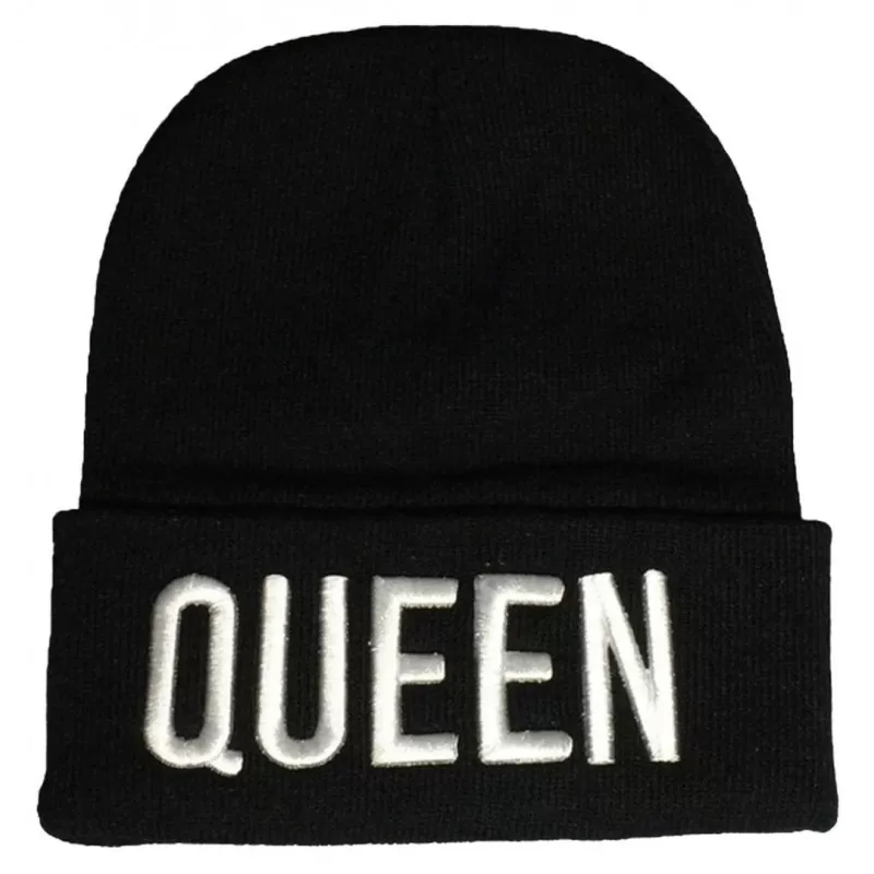 Bonnet Noir brodé ‘Queen’ brodé en Blanc sur l’avant