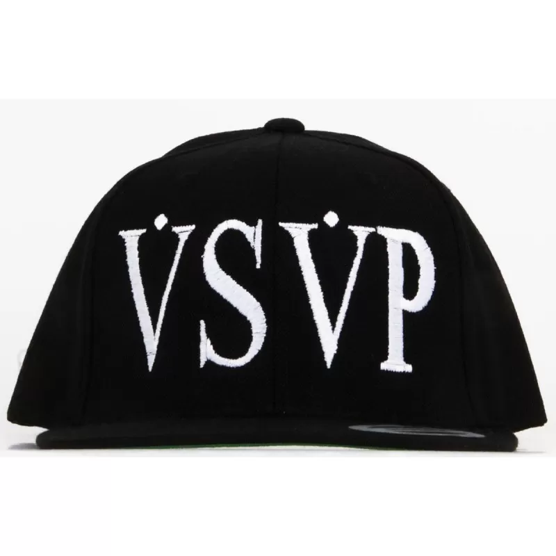 Casquette Snapback de couleur noire avec logo « ASAP » brodé en blanc sur le devant. Dessous de visière vert.