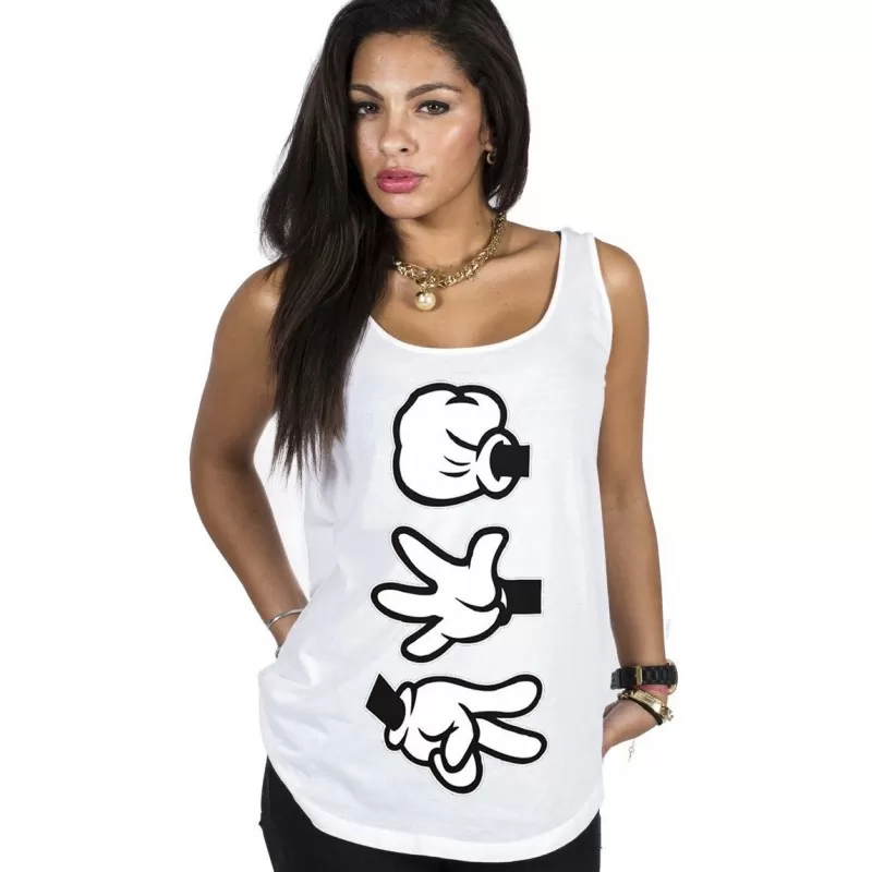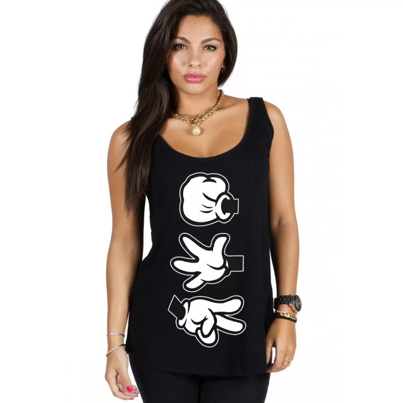 Debardeur femme de la marque magic custom avec illustration ‘Pierre feuille ciseaux’ imprimé sur l’avant du vêtement