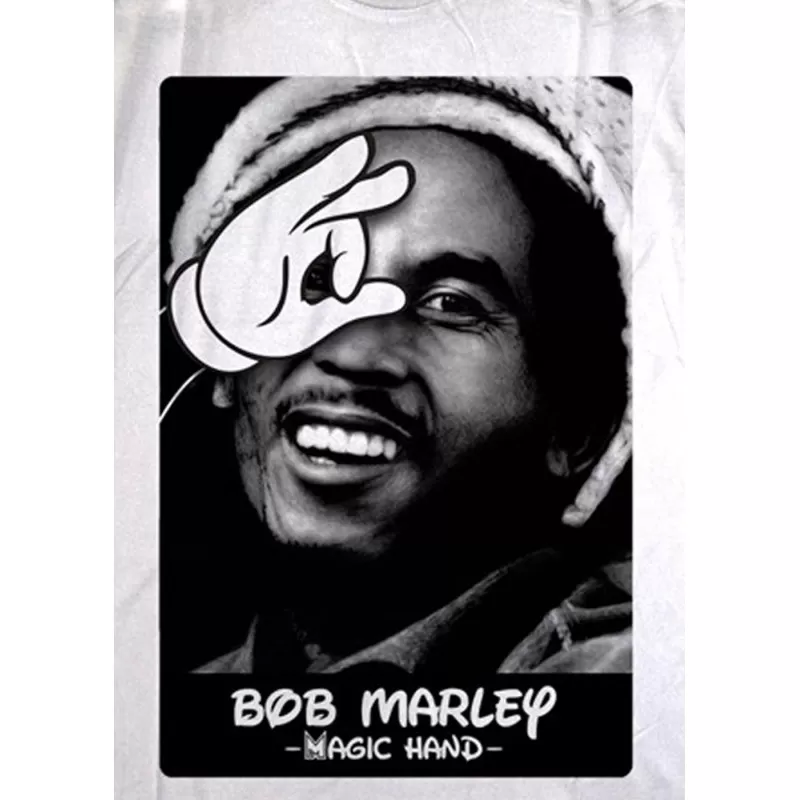 Photo BOB MARLEY avec la main de mickey sur l’oeil imprimé sur le devant