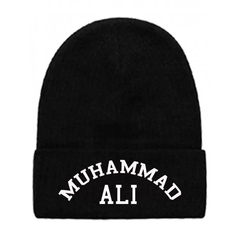 Bonnet Magic custom de couleur noir avec logo « Muhamad ali » brodé en blanc sur le devant du rabat.