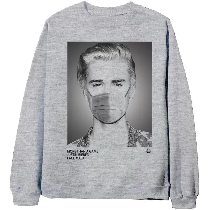 - Visuel ‘JUSTIN BIEBER FACE MASK‘ sérigraphié sur l’avant du sweat