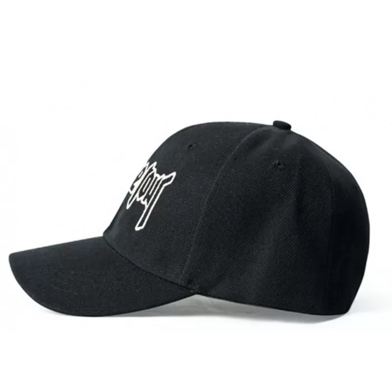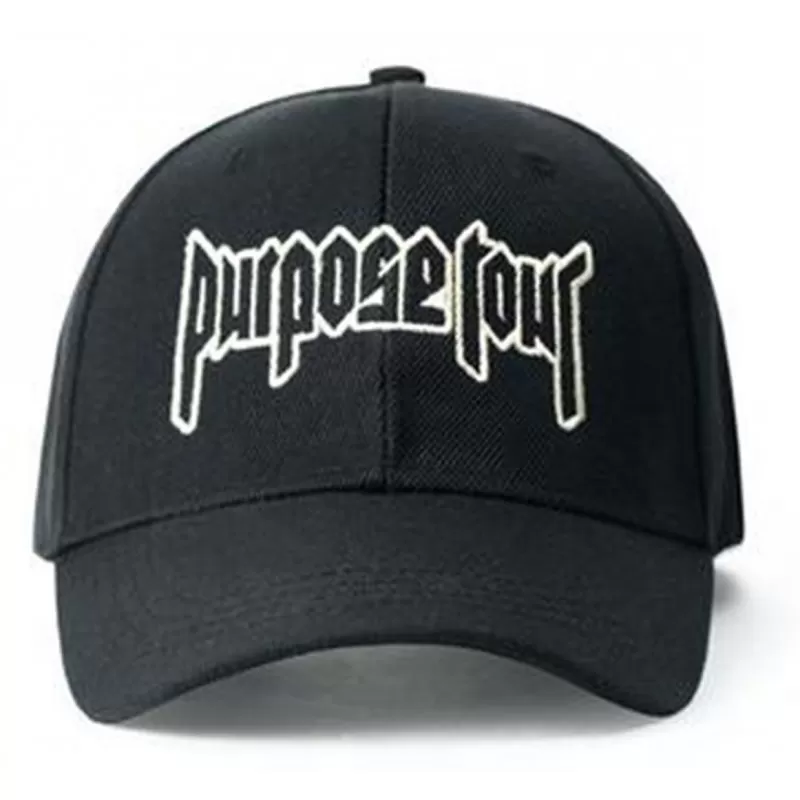 Casquette sporback de couleur noire avec broderie ‘Purpose tour’ en noir et blanc sur l’avant