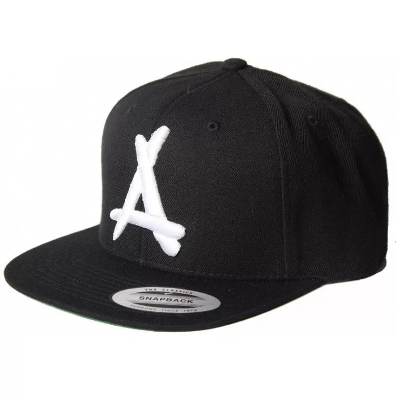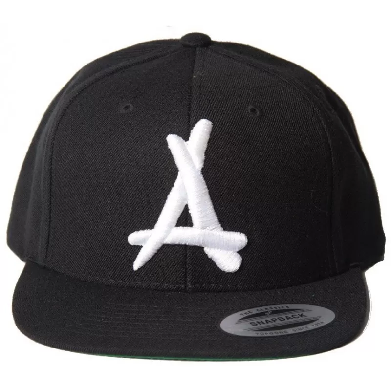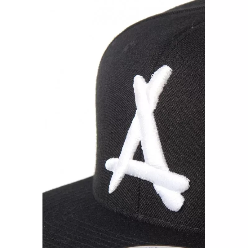 Snapback noire à visière plate. Logo THA ALUMNI brodé blanc et en 3D. Visiére noire. Languette de réglage à l’arrière.