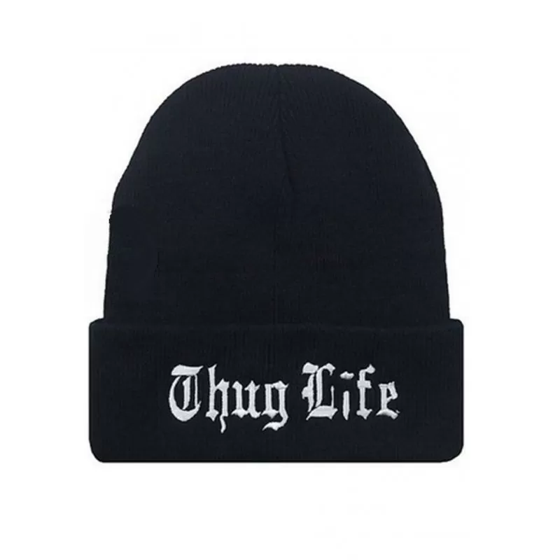 Bonnet Magic custom de couleur noire avec logo ‘THUG LIFE’ brodé en blanc sur le devant du bonnet