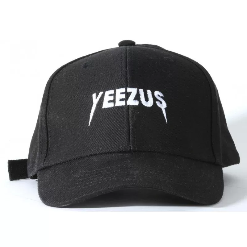 Casquette sporback de couleur noire avec broderie ‘YEEZUS’ en blanc sur l’avant